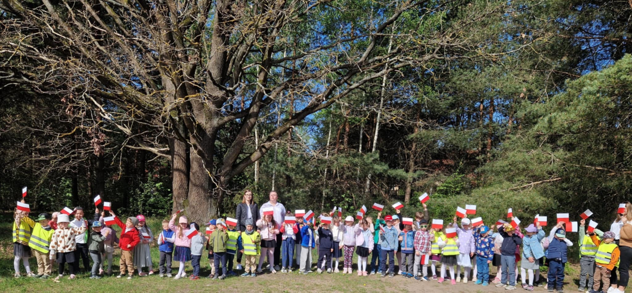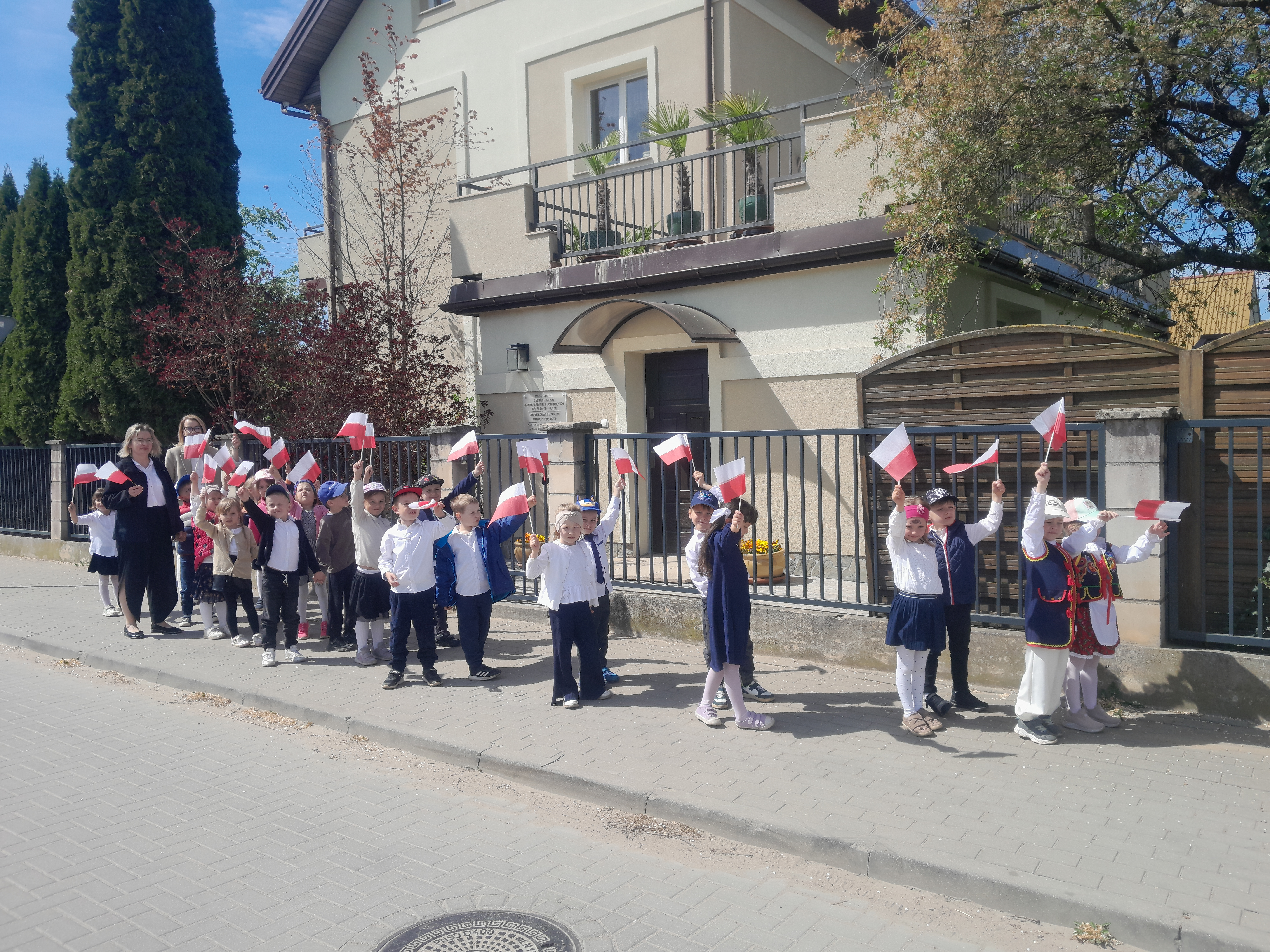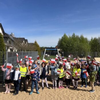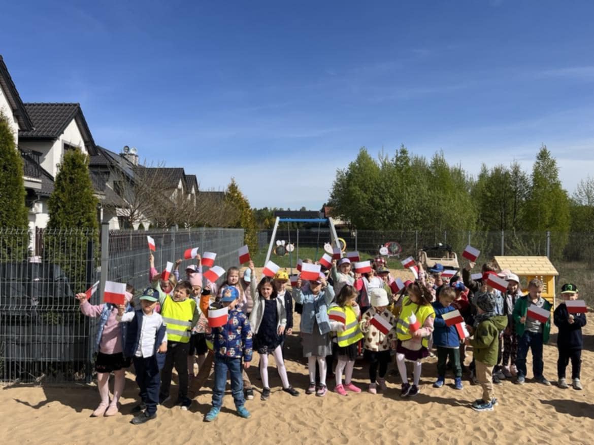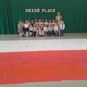30 kwietnia odbyły się w naszym przedszkolu uroczyste obchody Dnia Flagi. Dzieci w swoich salach wysłuchały krótkich pogadanek o symbolach narodowych, następnie wspólnymi siłami ułożyły ogromną tzw. „żywą flagę” oraz wysłuchały patriotycznych wierszy czytanych przez zaproszonych gości. Zwieńczeniem obchodów był pochód majowy ulicami Grabówki i rozdawanie przygotowanych przez dzieci pamiątkowych flag przechodniom.