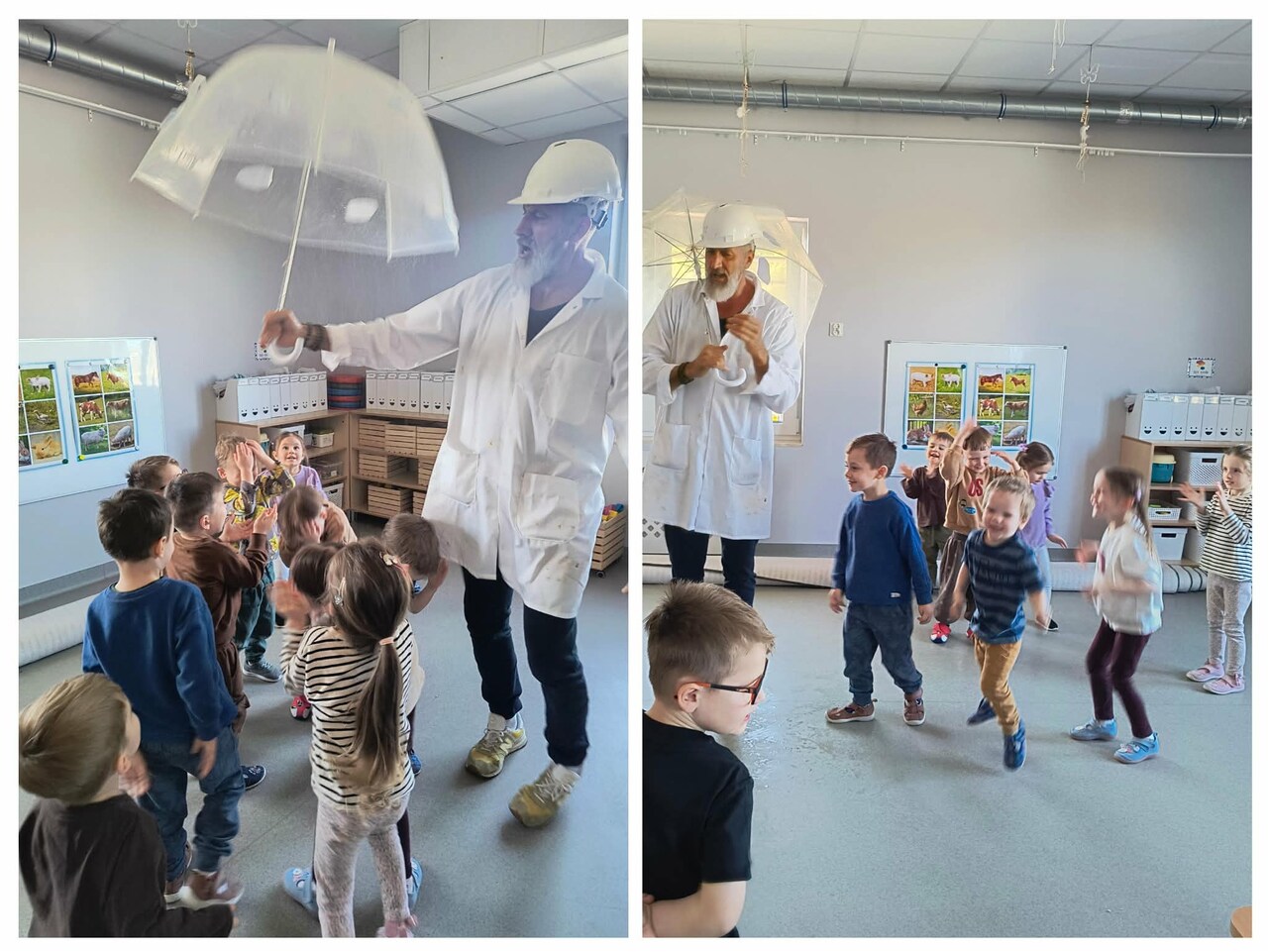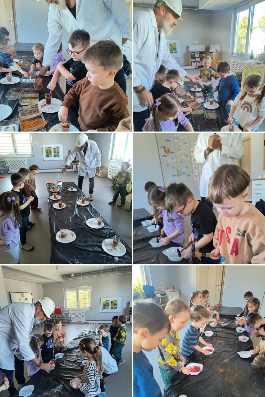 W grupie Arbuzy dzieci brały udział w ciekawych eksperymentach, które pozwoliły im poznawać świat poprzez działanie i obserwację. Przedszkolaki z dużym zainteresowaniem mieszały różne substancje i sprawdzały, jakie zachodzą zmiany. Wspólnie obserwowały reakcje, wyciągały wnioski i dzieliły się swoimi spostrzeżeniami.