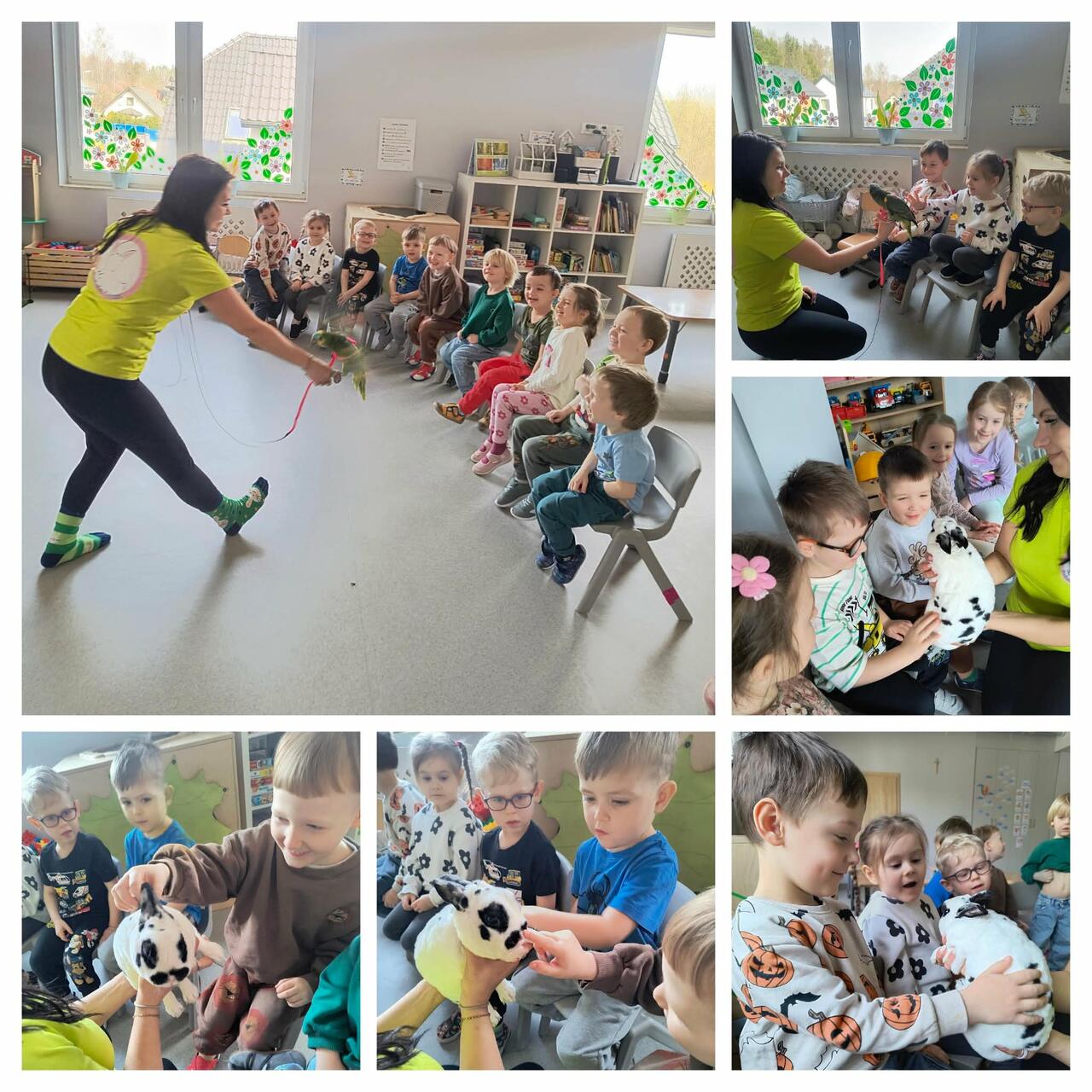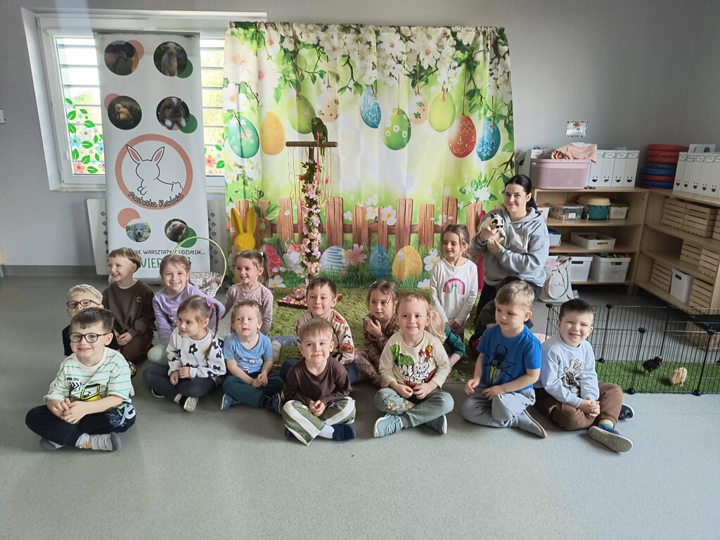 W naszej grupie odbyły się warsztaty wielkanocne „Puchata radość”, które dostarczyły dzieciom wielu niezapomnianych wrażeń. Przedszkolaki miały możliwość bezpośredniego kontaktu z żywymi zwierzętami. Dzieci z zaciekawieniem obserwowały zwierzątka, mogły je pogłaskać i poznać ich zwyczaje. Spotkanie sprawiło im ogromną radość i wzbudziło wiele pozytywnych emocji.