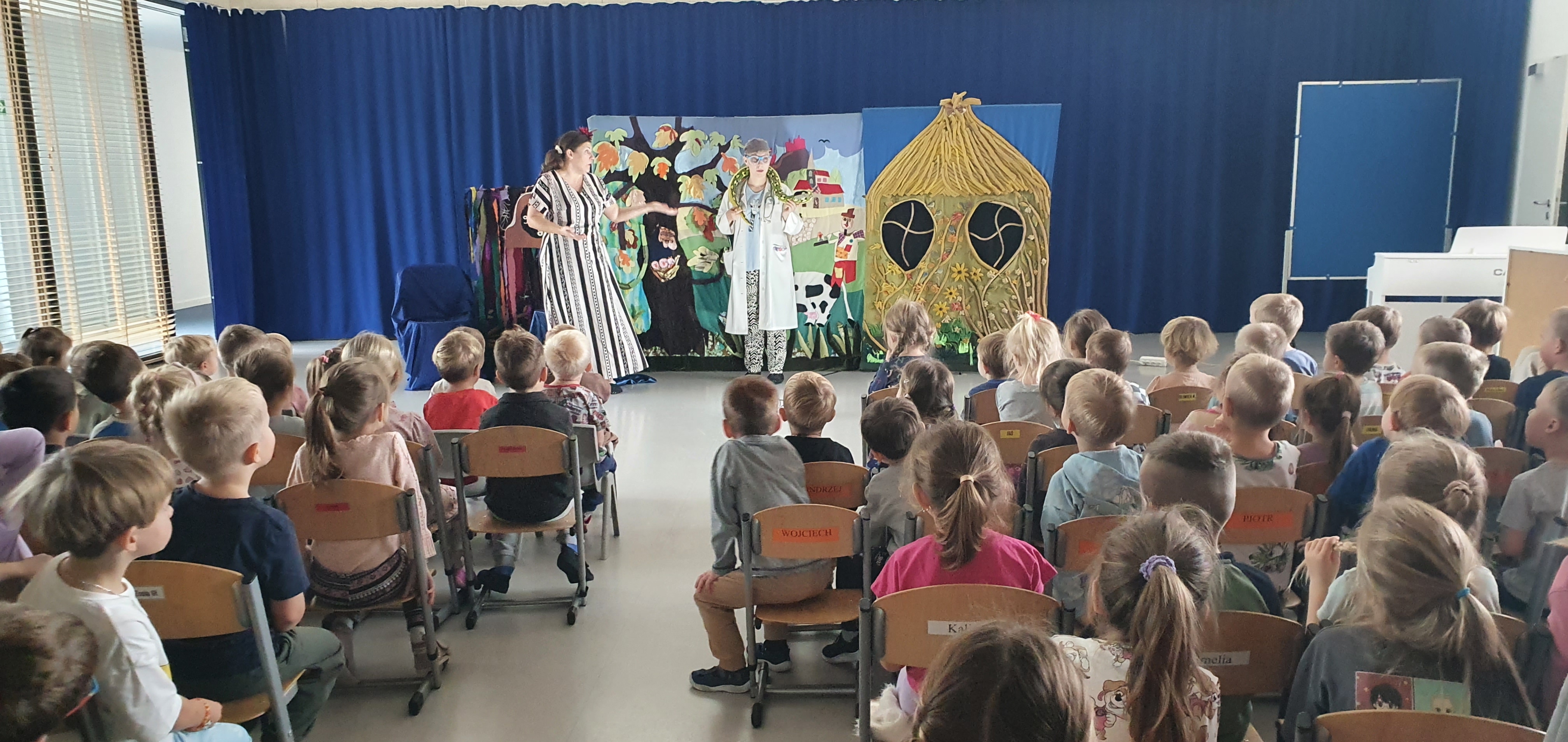 25 października nasze przedszkole odwiedzili artyści teatru „Magic”. Przedszkolaki obejrzały przedstawienie pt. „Doktor Zdrówko”. Była to ciekawa opowieść o lojalności i przyjaźni ze zwierzętami oraz o tym, aby pomagać sobie nawzajem. Cenna radą okazała się… że nie trzeba bać się lekarza.