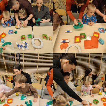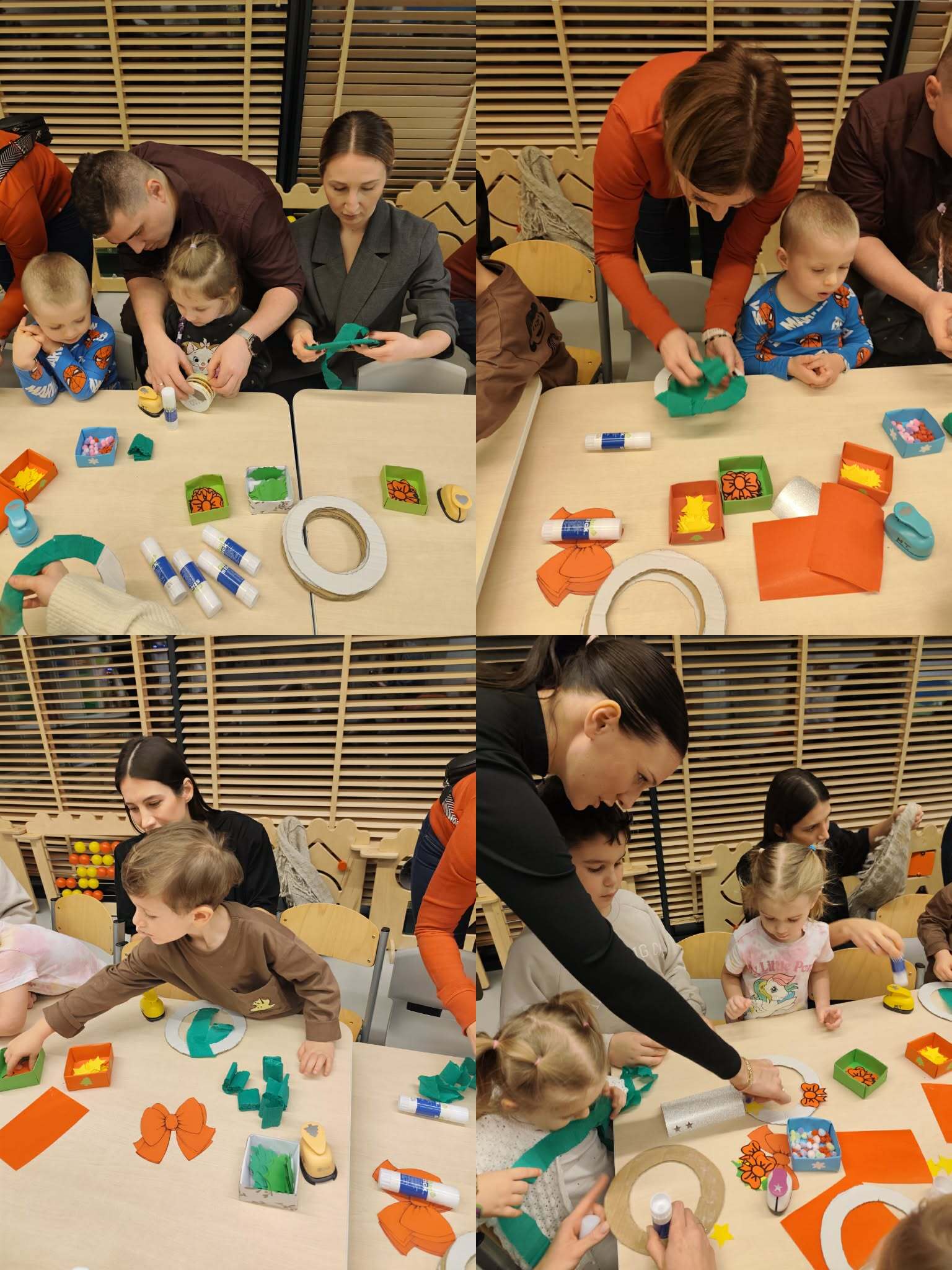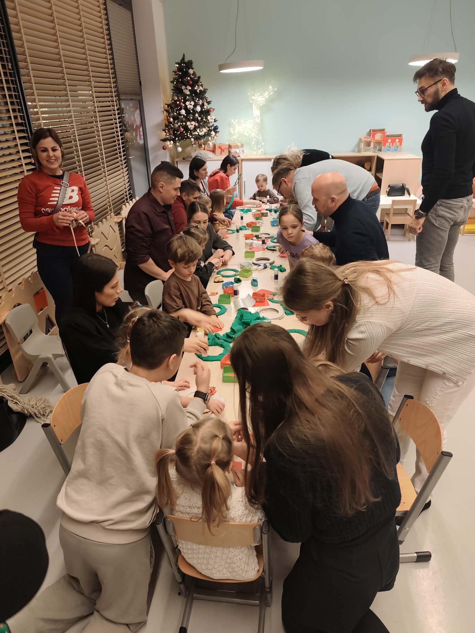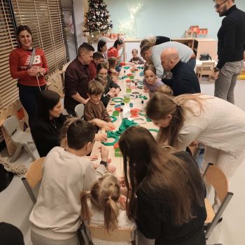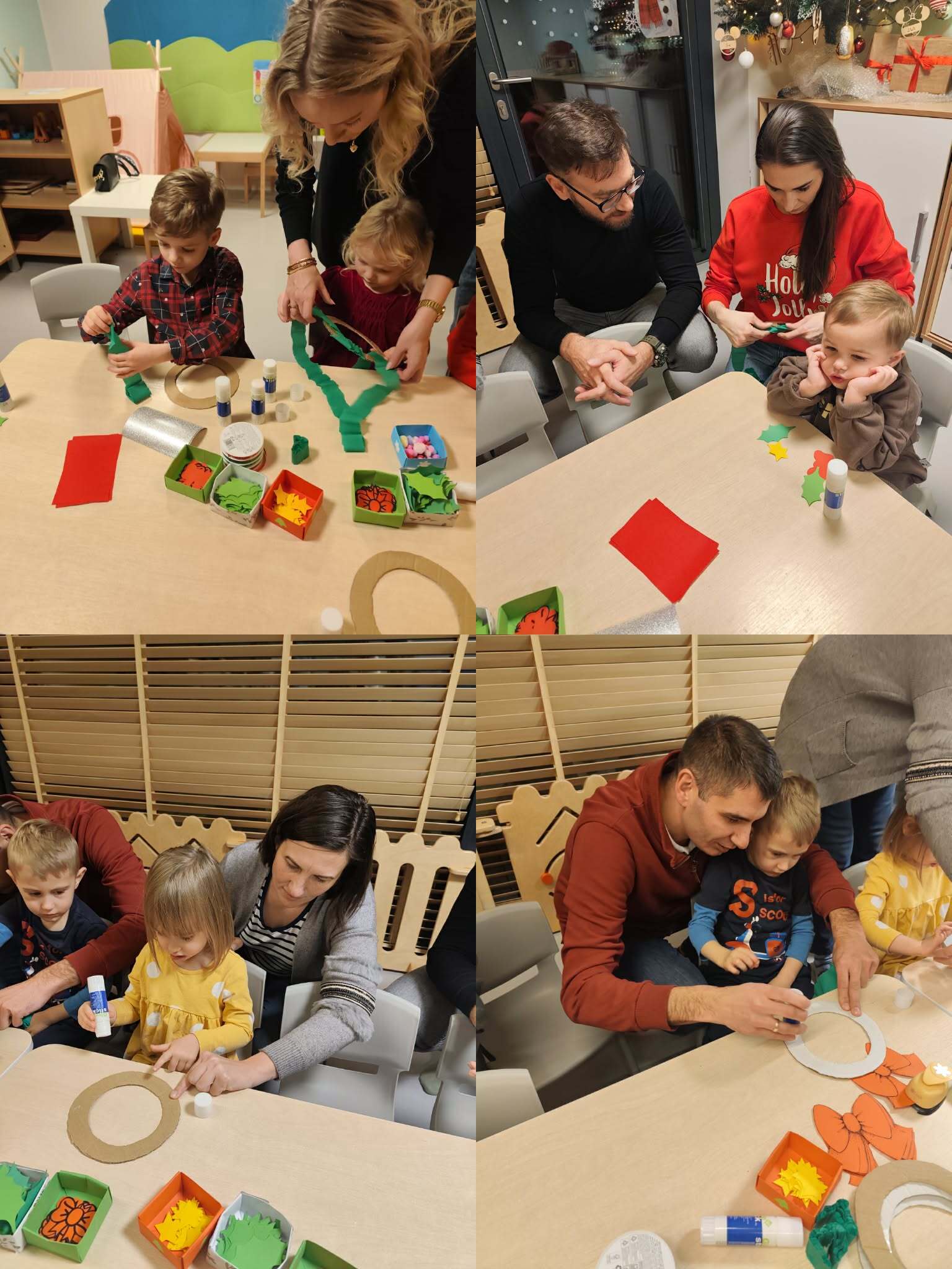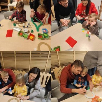 Podczas naszych świątecznych warsztatów dzieci razem z rodzicami dekorowali wieniec świąteczny. Było dużo radości, śmiechu.