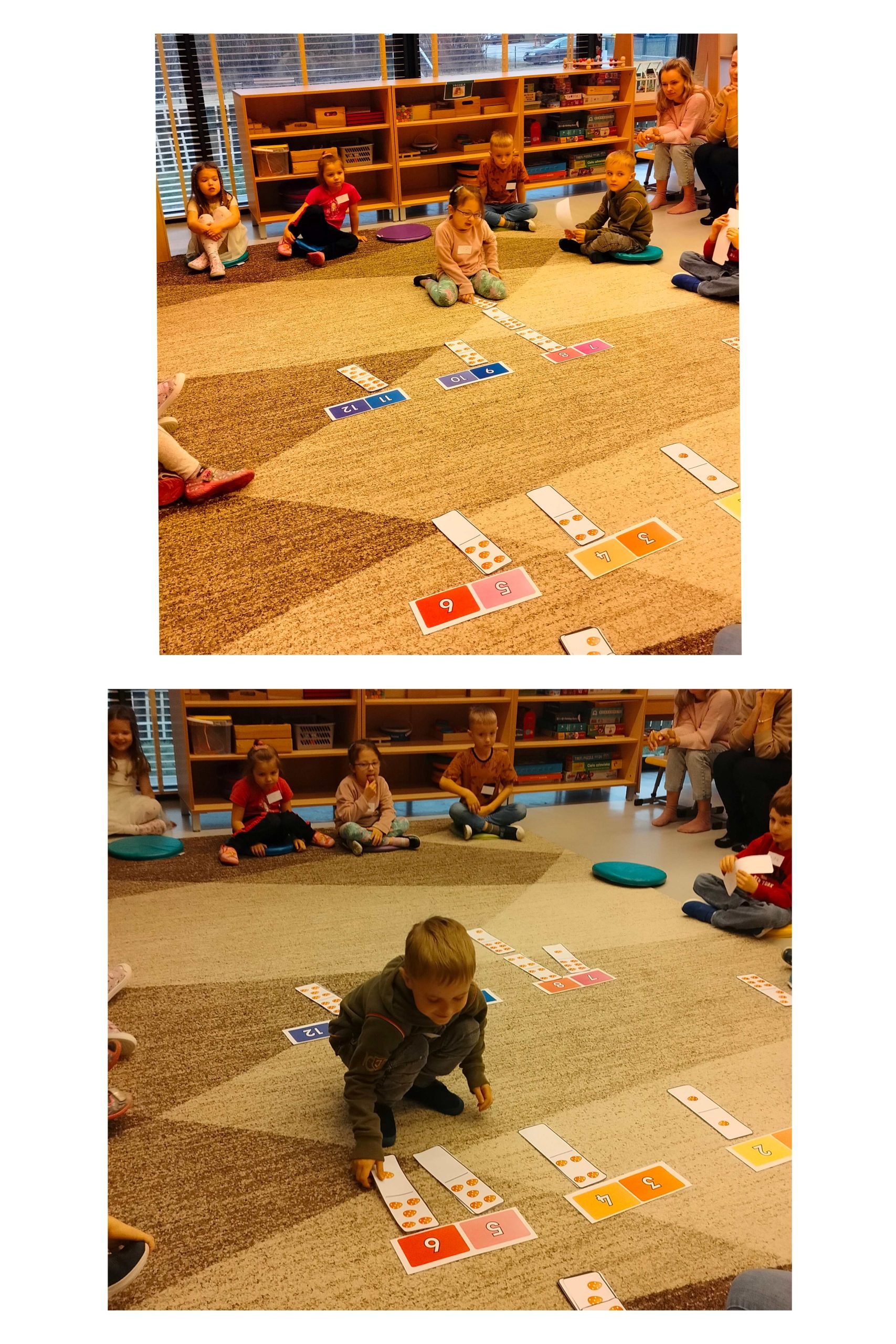 Podczas zajęć otwartych rodzice mogli zaobserwować, w jaki sposób dzieci współpracują ze sobą podczas wspólnych działań. Granaty zaprezentowały swoje umiejętności i wiedzę matematyczną. Przy pomocy kostek domina przeliczały, dodawały, rozróżniały prawą i lewą stronę, utrwalały wygląd zapisu graficznego cyfr. Poradziły sobie z matematycznymi zadaniami znakomicie. Serdecznie dziękujemy rodzicom za wspólnie spędzony czas.