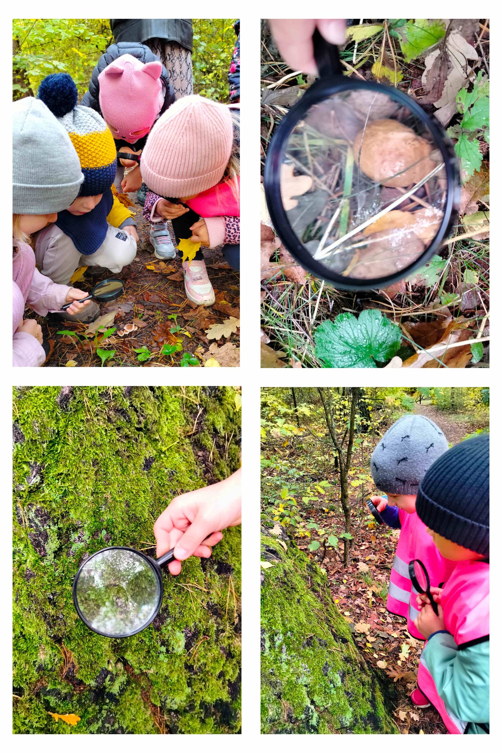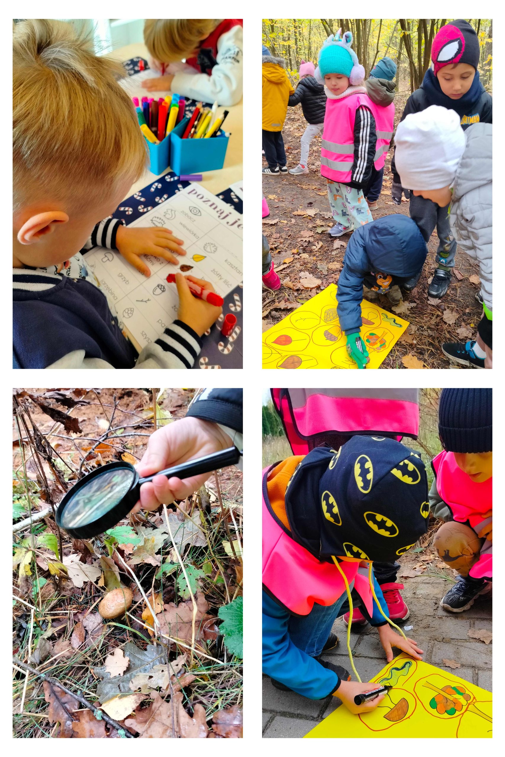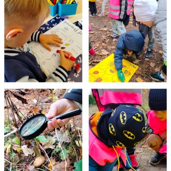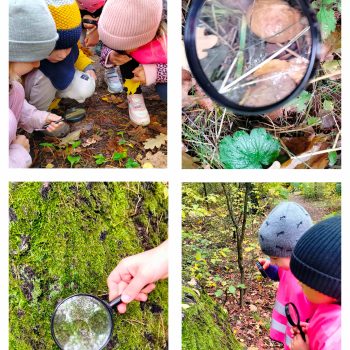 W ramach akcji „Dzień pustej sali” dzieci uczestniczyły w zajęciach w terenie. Szukanie oznak jesieni, oglądanie przez lupę jesiennego lasu sprawiło, że dzieci bardzo zaangażowały się we wspólne działania. Kontakt z naturą, zdobywanie wiedzy w plenerze z pewnością niesie same korzyści.